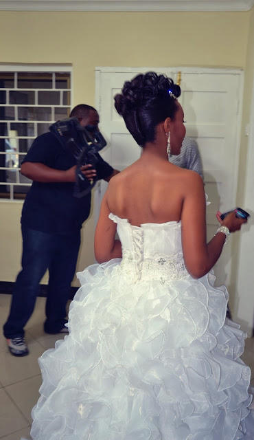 Meet our bride Florentina. She got her full bridal package at Wedding Bells - Hair, Makeup, Dress and Accessories. She is so relaxed and sweet and it was a pleasure dressing and styling her. She wore an A-line ruffled dress in white. Enjoy some of the photos we took after her makeup session at our Spa. Drop by for a visit, our Spa is at Mikocheni, Kwa Mwalimu, Barabara ya Rose Garden, Karibu na La Fiesta.